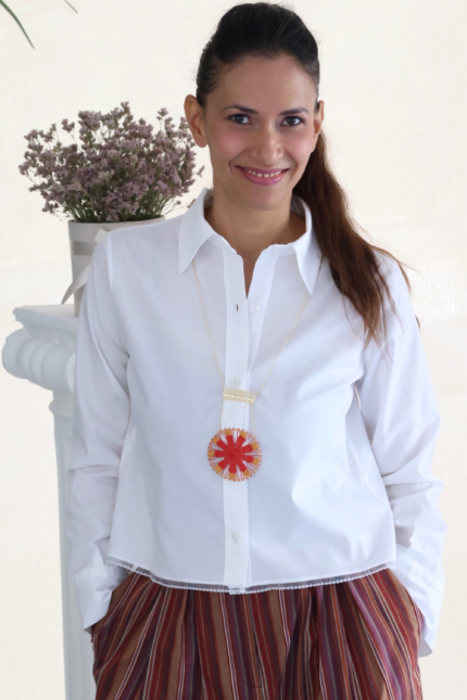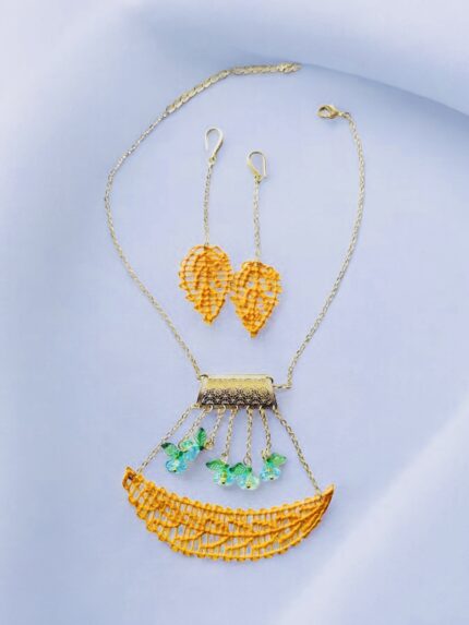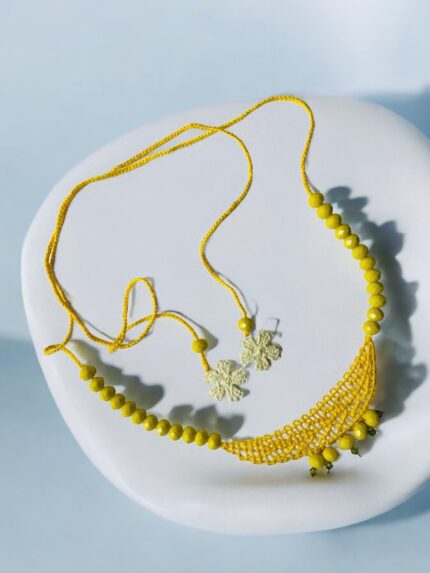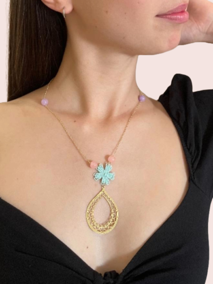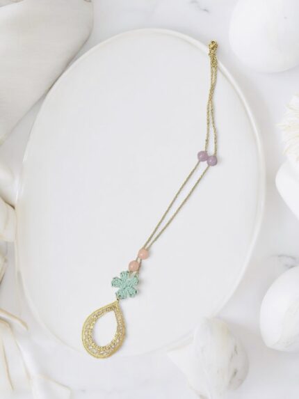 Camila collar en técnica de Ñandutí con detalles de crochet unidos a cristales