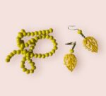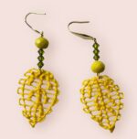 Amelia pendientes en técnica de Ñandutí, inspirados en hojas amarillas.