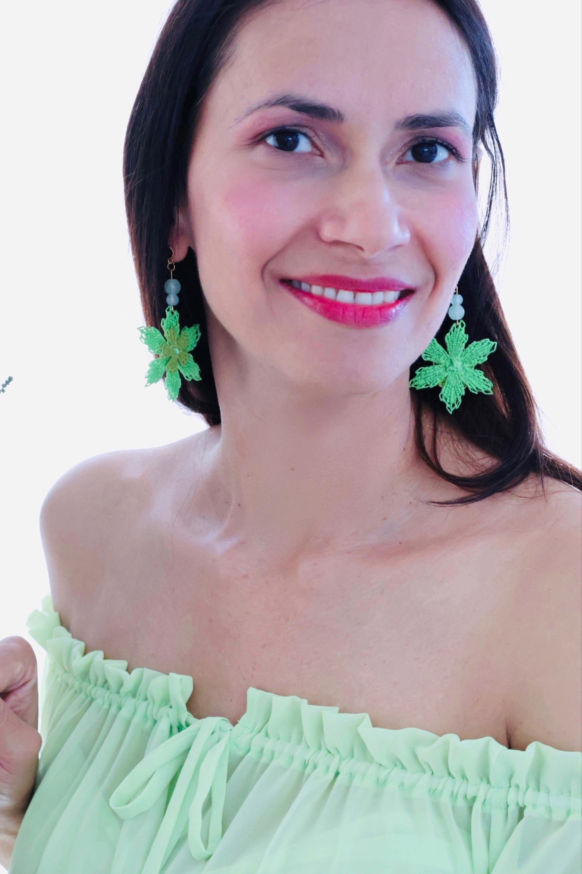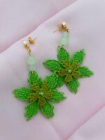 Pendientes hechos a mano con técnica de ñandutí, cierre de acero inoxidable bañado en oro de 18 quilates.