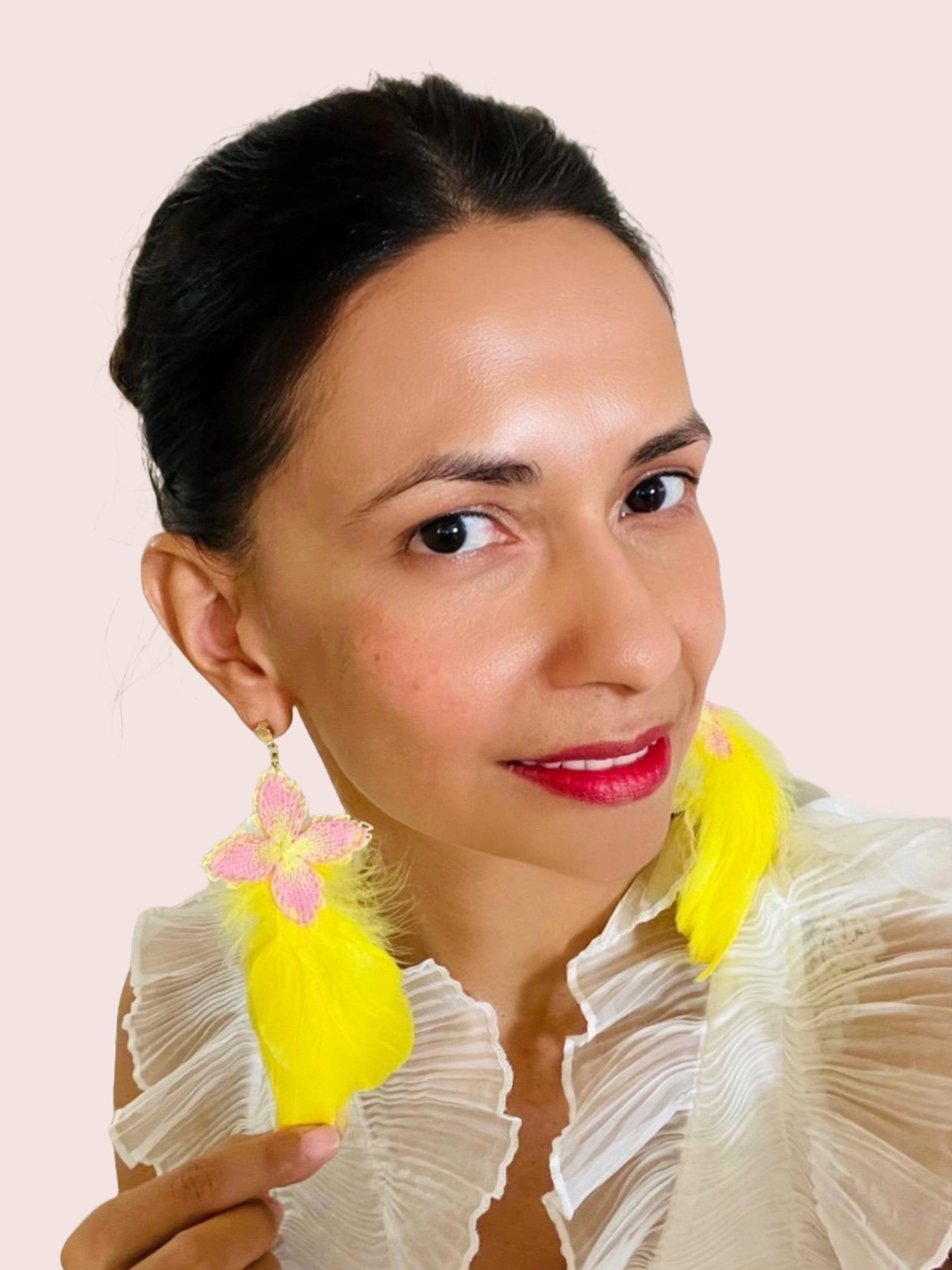 Técnica de Ñandutí inspirada en flores de Jazmín con presión de rosca de latón. Pieza única.