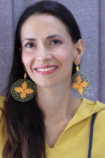 Vera pendientes en técnica de Ñandutí, inspirados en flor de coco.