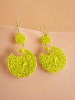 Jade Pendientes en técnica de Ñandutí, con detalle de flor de cristal.