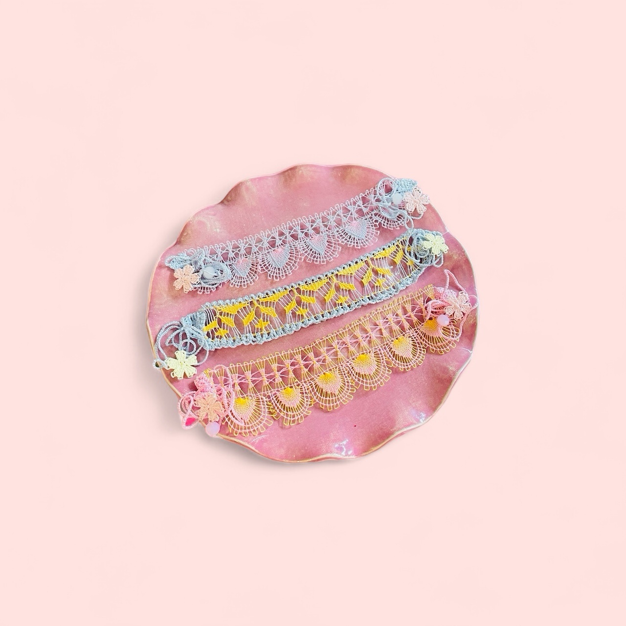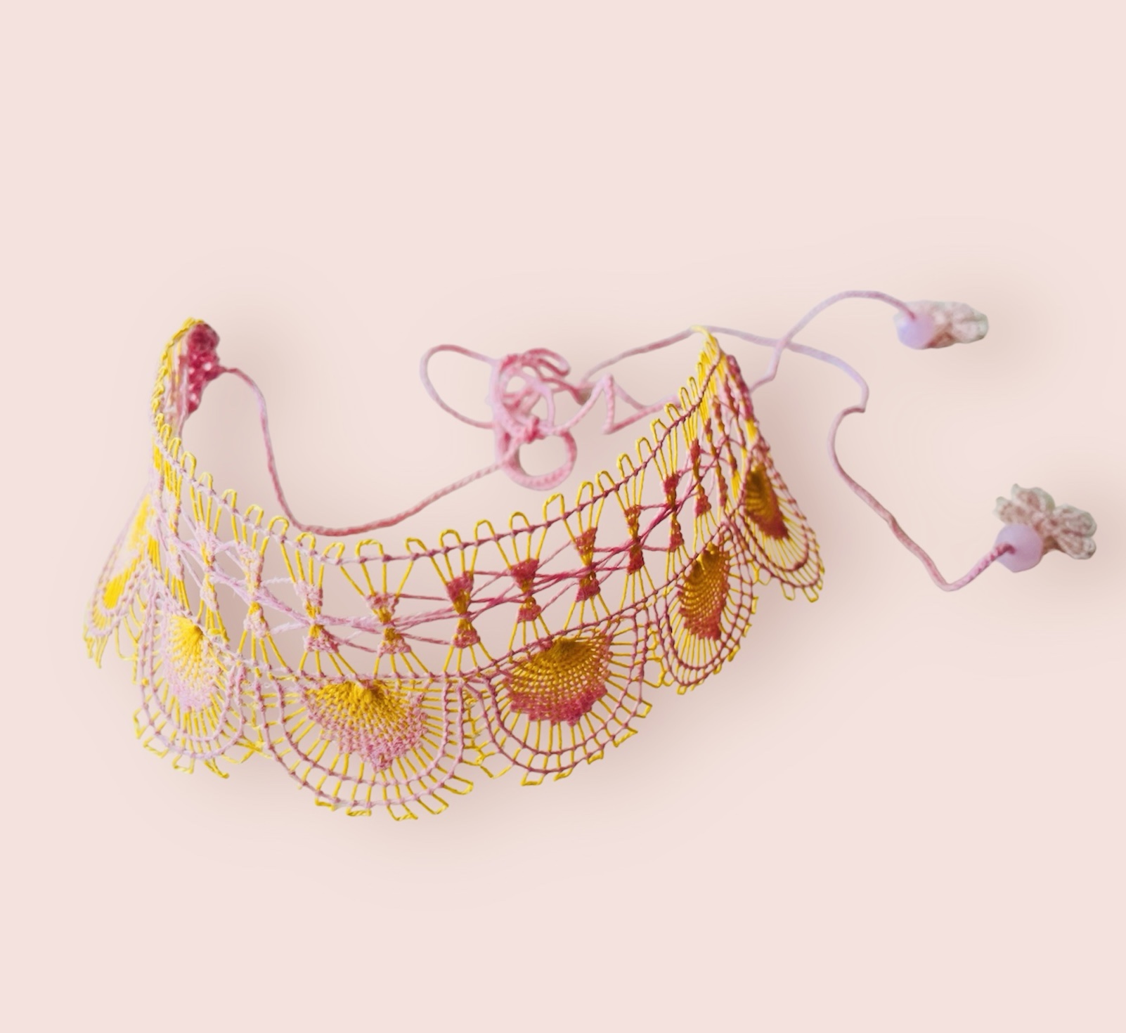 Claudia collar en técnica de ñandutí inspirado en coloridas flores con detalles