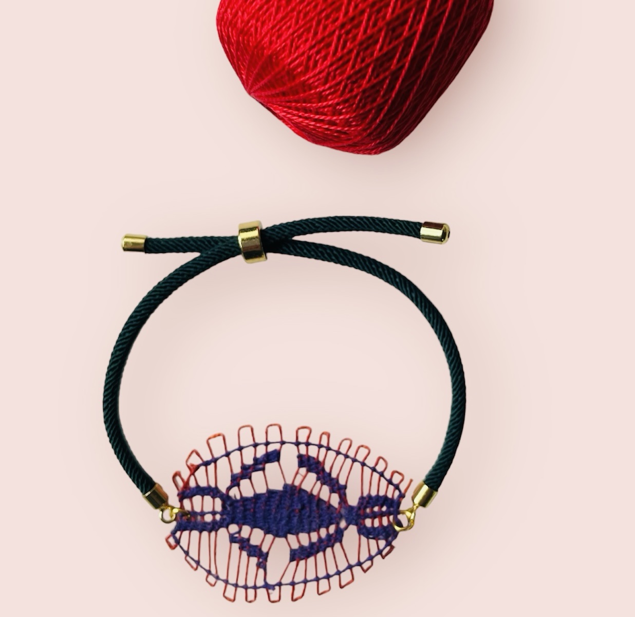 Material: hilo de algodón, pulsera de nailon trenzado, ajustable con nudo de acero inoxidable.