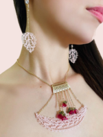Conjunto de collar y pendientes con técnica de ñand inspirado en primavera. Pieza única.