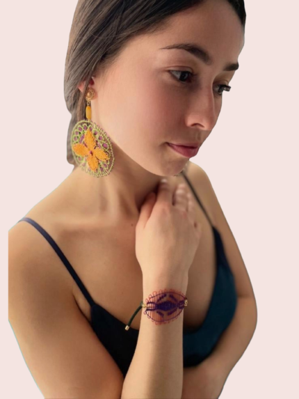 Mara pulsera ajustable con imitando de hojas en técnica de ñandutí.