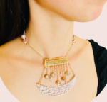 Prisilla  collar en técnica de Ñandutí, unido con cristales, nácar y lapislázuli