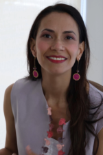 Zoe pendientes en técnica de Ñandutí, inspirados en flor de coco.